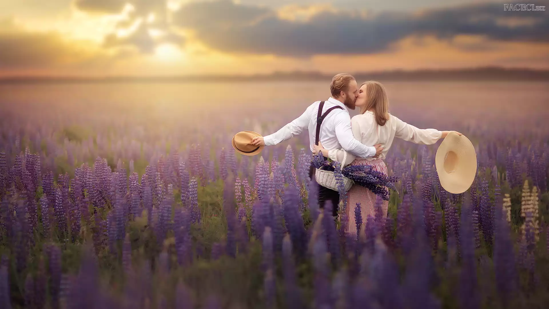 Pocałunek, Kobieta, Łubin, Łąka, Mężczyzna - faceci.biz